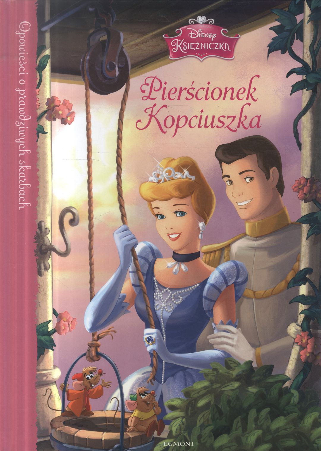 Kopciuszek i książę świętują pierwszą rocznicę ślubu. Z tej okazji księżniczka dostaje od męża pierścionek z szafirem. Niespodziewanie pod koniec wypełnionego obowiązkami dnia okazuje się, że klejnot zniknął. Zmartwiony Kopciuszek wraz z myszkami – Jackiem i Guciem – rozpoczynają poszukiwania. Na co odważą się myszki, aby pomóc księżniczce? I gdzie może znajdować się cenna zguba? Seria Opowieści o prawdziwych skarbach pozwoli ci na co dzień cieszyć się towarzystwem Śnieżki, Kopciuszka, Aurory oraz innych baśniowych bohaterek. Znajdziesz tu odpowiedź na nurtujące wszystkich pytanie: co się działo za górami, za lasami po żyli długo i szczęśliwie?